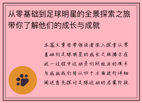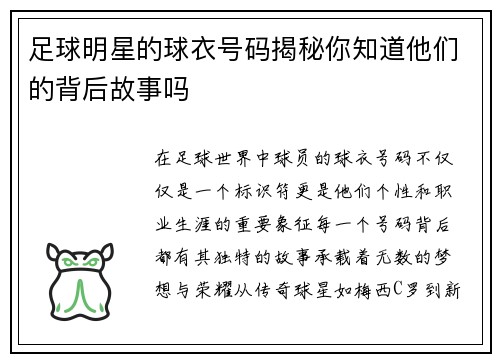 在现代足球的竞技舞台上,明星球员凭借独特的绝招与技巧不断刷新我们的认知,吸引着无数球迷的目光。本文将深入解析几位足球明星的绝招,通过高清图集展现他们在比赛中的经典时刻,并揭秘这些技能背后的训练方法和技巧。我们将从技术分析、身体素质、心理素养以及训练方法四个方面进行详细探讨,帮助读者更全面地理解足球运动中的高端技巧与实际应用。无论是想要提升个人技能的业余爱好者,还是希望了解职业球员发展历程的球迷,都...
